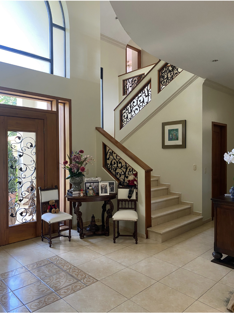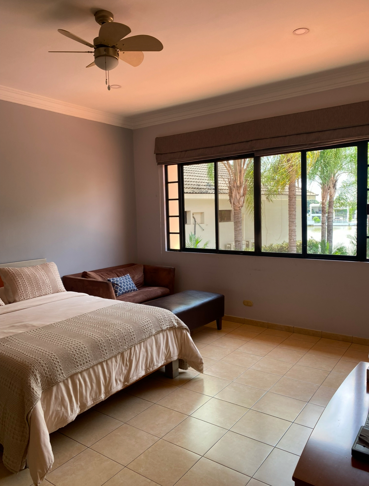 La planta alta cuenta con 4 dormitorios, cada uno con su baño privado. Dormitorio principal con walk-in-closet y balcón, que brinda una increible vista a la laguna, sala de estar/tv y un amplio ático.Terreno: 1200m2